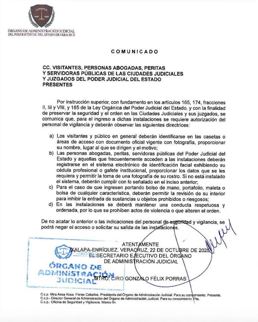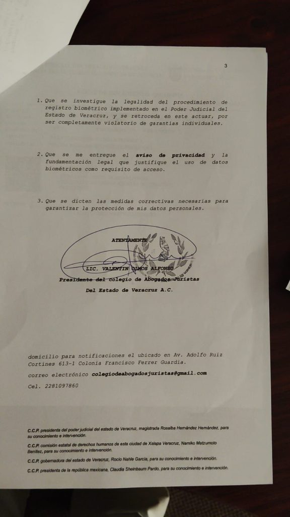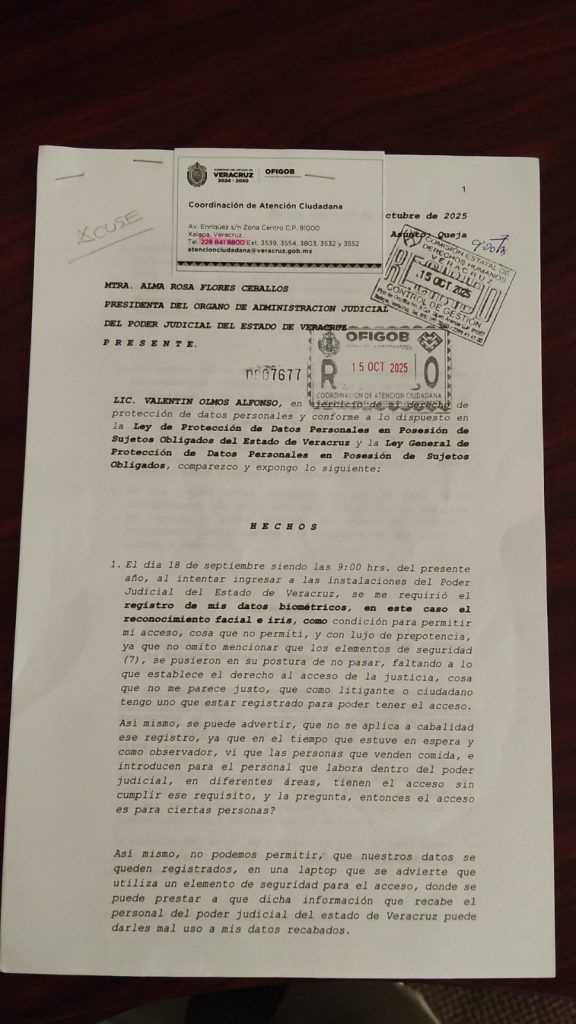 Abogados en Veracruz están denunciando que el Poder Judicial del Estado de Veracruz (PJEV) está condicionando el acceso a los juzgados a cambio de datos biométricos.