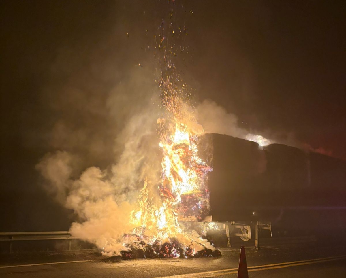 Cuando un trailer estuvo a punto de ser reducido a fierro viejo cuando su cargamento de pastura para ganado empezara a incendiarse.