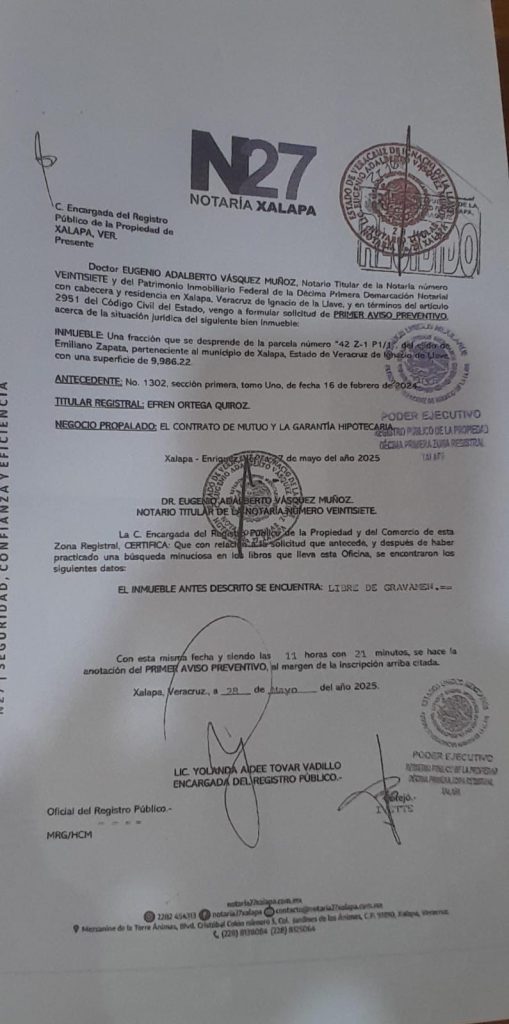 La empresa, supuestamente, se ofreció a comprar el terreno para desarrollar un proyecto inmobiliario, pero en realidad, lo que hicieron fue vender los lotes a terceros sin el consentimiento de Efrén. La Notaría número 27 de la ciudad de Xalapa también ha sido involucrada en el caso, ya que se utilizó para realizar la hipoteca del terreno. Efrén ha exigido que se tomen medidas para esclarecer el caso y ha pedido a la gobernadora Rocío Nahle que intervenga en el asunto.
