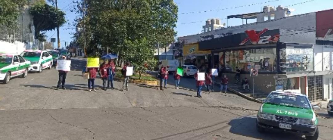 Personal de limpieza cierra vialidad frente al CECAN en Xalapa por adeudos salariales y violaciones laborales