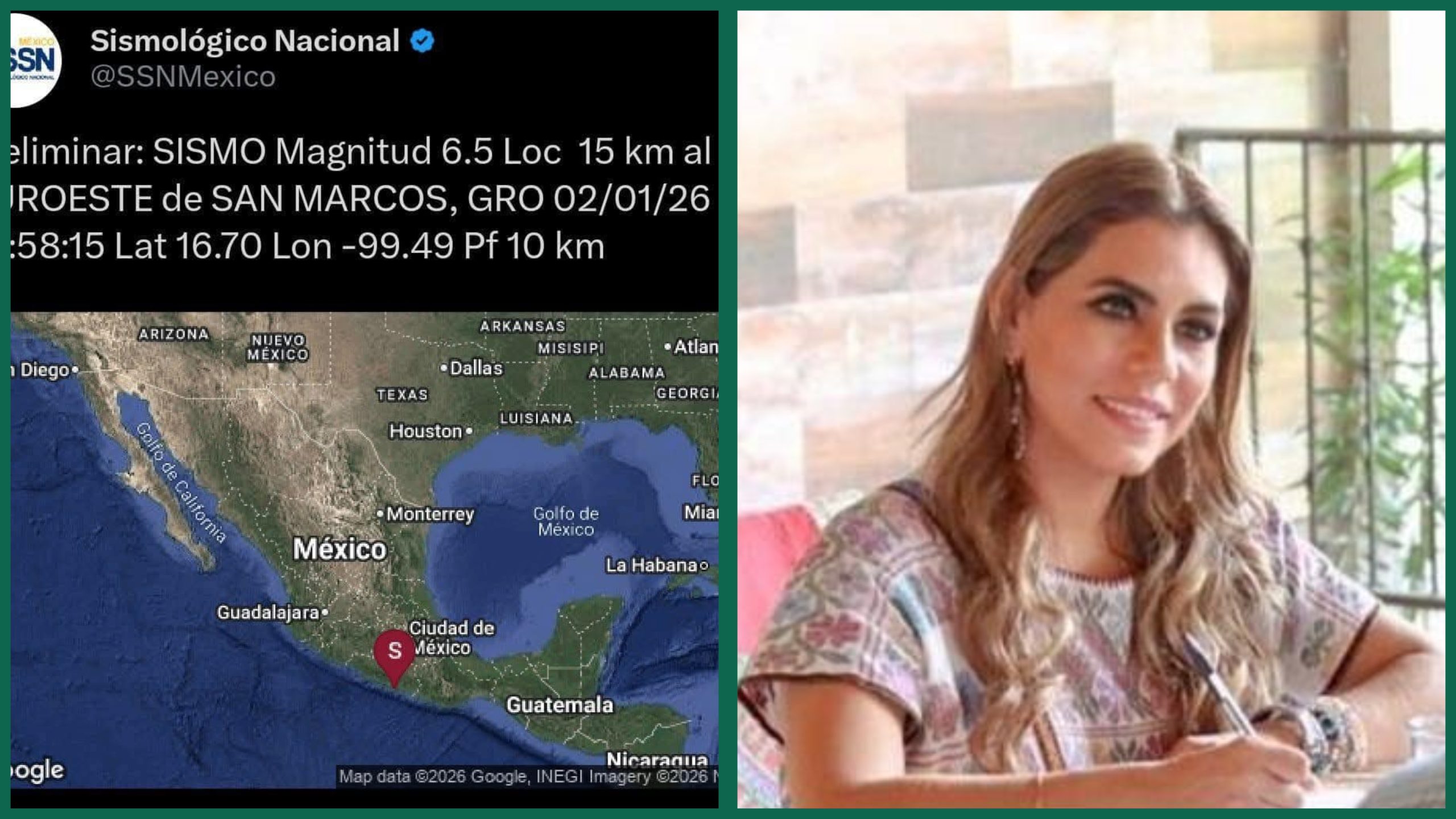 La gobernadora del estado de Guerrero, Evelyn Salgado Pineda, dio a conocer que el sismo de 6.5 de magnitud con epicentro en San marcos no dejó daños de consideración ni víctimas, la mañana de este viernes 2 de enero del 2026.