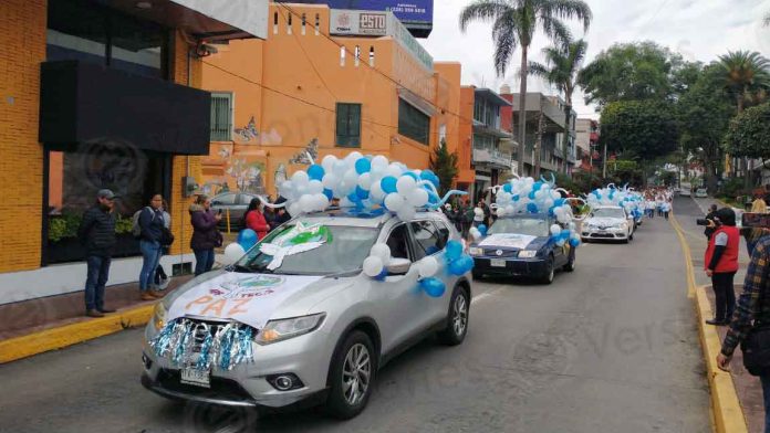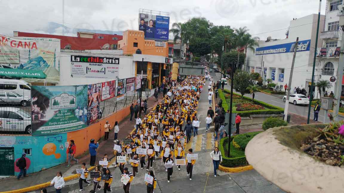 Esta mañana la dirección y el personal de la Escuela Secundaria Técnica Número 3 realizaron una marcha toda la avenida Ávila Camacho, de Xalapa, para celebrar la caminata con motivo el «Día Escolar de la No Violencia y la Paz». Fotos Victor Hugo Moreno Hernández