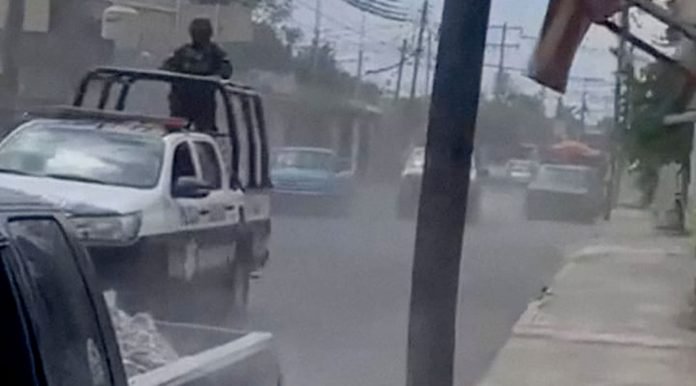 Elementos de Policía Estatal y Fuerza Civil mantienen un operativo en la zona para dar con los ocupantes de las unidades aseguradas.
