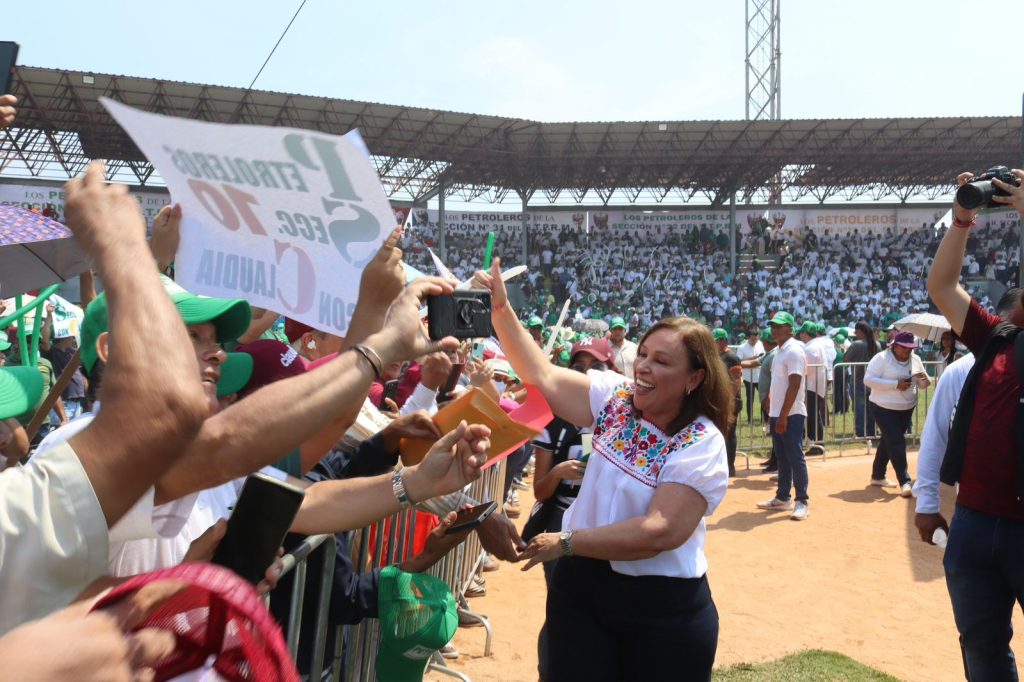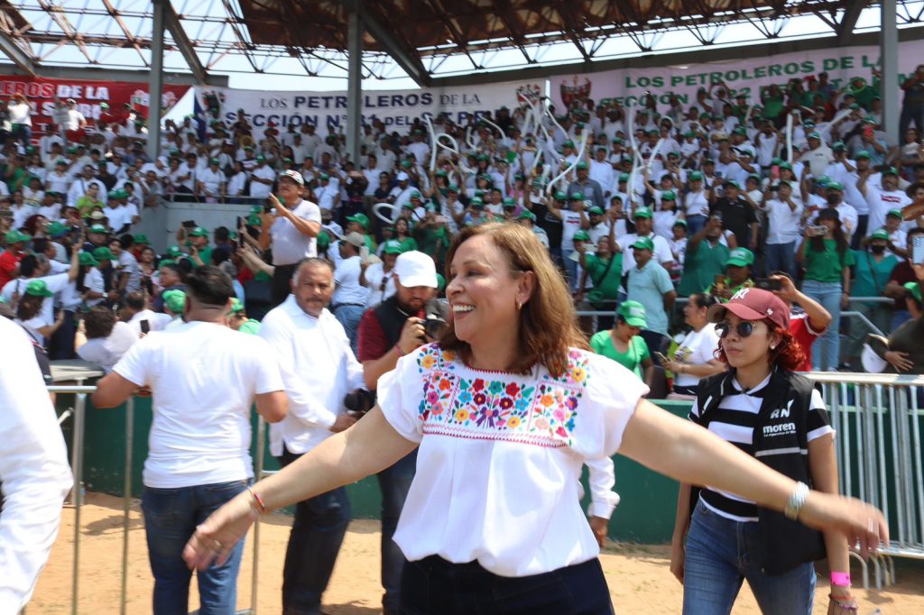 Ante petroleros, maestros, militantes, ciudadanos presentes del sureste veracruzano, Sheimbaum Pardo calificó con un 10 la trayectoria de Rocío Nahle y subrayó que el próximo 2 de junio se reescribirá nuevamente la historia de México.