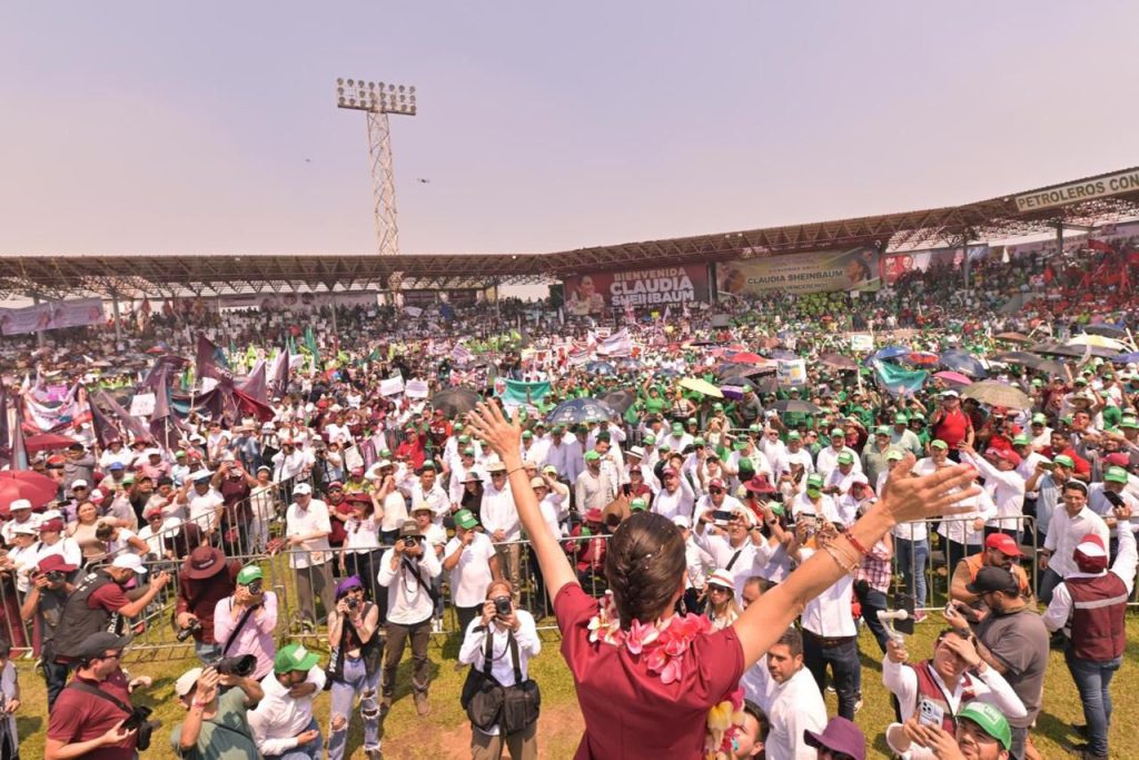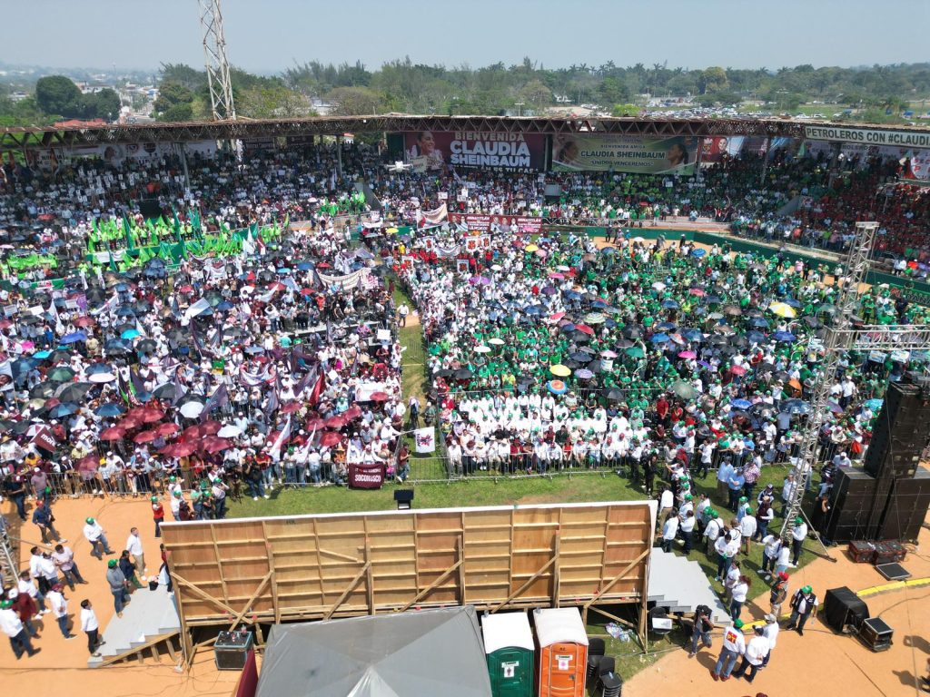 En el estadio de béisbol “18 de marzo de 1938”, Sheinbaum afirmó que la entidad cuenta con una riqueza invaluable por lo que coordinada con Rocío Nahle, “próxima gobernadora de Veracruz”, indicó, fortalecerán la industria petrolera del estado.