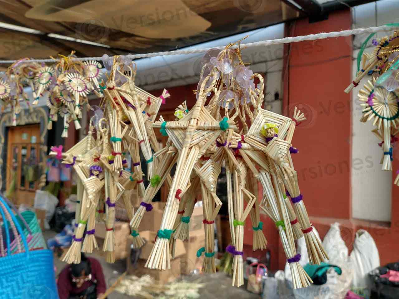 Maria, del municipio de Acajete, cada año llega a instalarse en el mercado de San José para vender sus figuras: «las elaboramos con muestras propias manos; nuestros productos artesanales van de de lo 40 pesos a 15 pesos, dependiendo la figura».