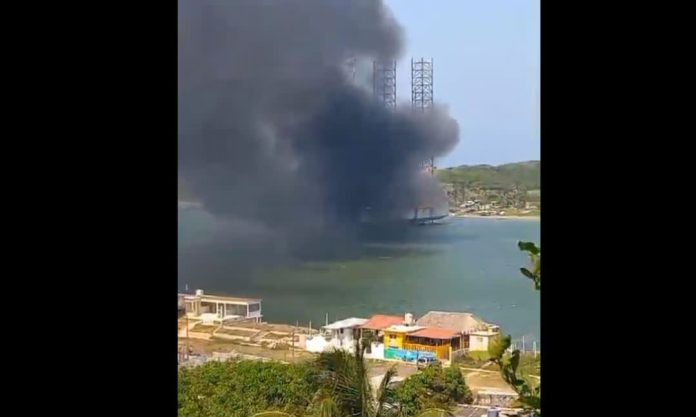 Una plataforma petrolera en proceso de desmantelamiento se incendió en el puerto de Alvarado.