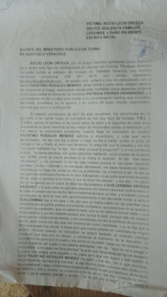 Desgraciadamente el temor que las agraviadas manifestaban en lo social y político, tuvieron consecuencias qué lamentar: Primero, el rechazo de la comunidad por haber sido electas candidatas de un partido sin arraigo en la comunidad, que afectaron sus ventas diarias de comida, la presión psicológica y burla hacia hijos y familiares cercanos y la violencia familiar desatada en contra de la candidata a la presidencia, Rocío León, cuyo marido la agredió físicamente argumentando su enojo por haber salido como candidata, situación que generó que la victima de la agresión interpusiera denuncia por el delito de violencia familiar, lesiones y daño en bienes ante la Fiscalía Especializada en Investigación de delitos de violencia contra la Familia, mujeres, niñas y niños y de trata de personas con sede en Huatusco. En resumen, todo un desenlace trágico por una maniobra de MC, de la cual ya no se sabe si fue un error involuntario o simplemente una estrategia para presumir que postularon candidatos y candidatas en los 212 municipios.