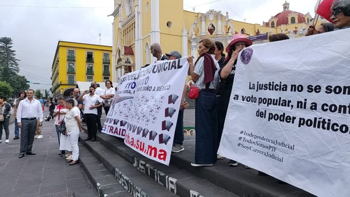Un grupo de trabajadores del poder judicial realizó una protesta en las inmediaciones de la Plaza Lerdo.