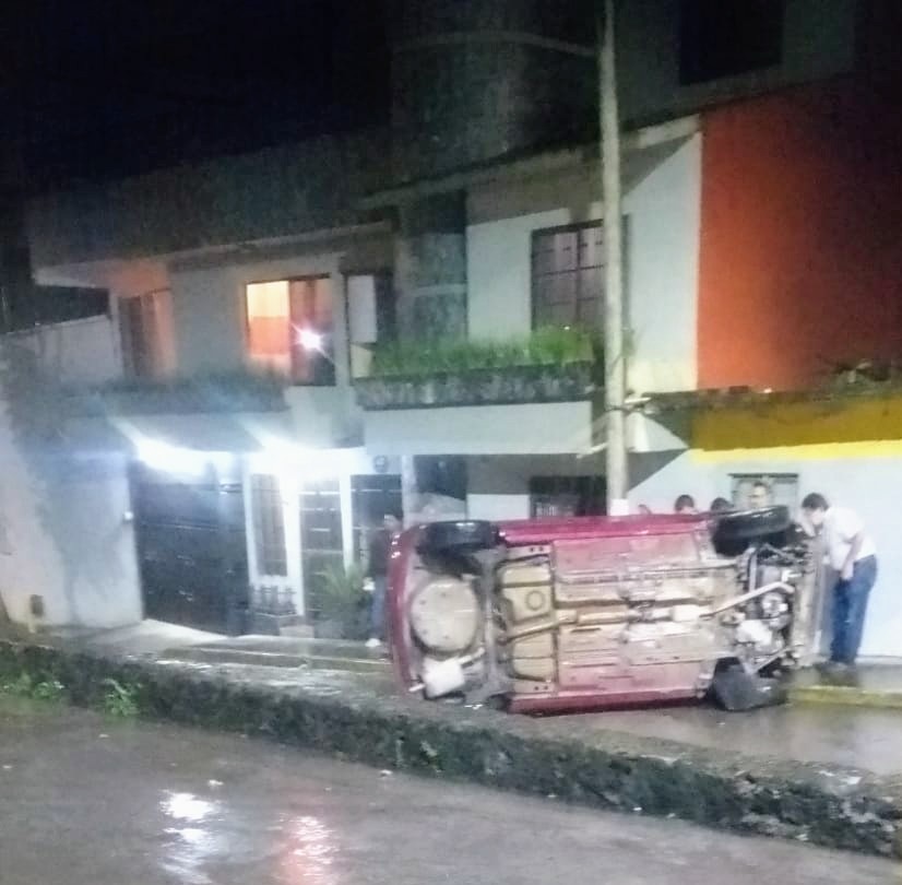 Un joven resultó lesionado tras la volcadura del auto en el cual viajaba, sobre una calle de la colonia Obrero Campesina, municipio de Xalapa.