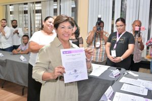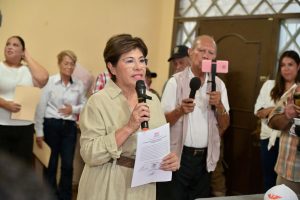 Acompañada de su familia, su planilla y un gran número de simpatizantes que con banderas guindas y verdes convirtieron el evento en una auténtica fiesta del pueblo, la alcaldesa electa recibió con emoción la constancia que la acredita oficialmente.