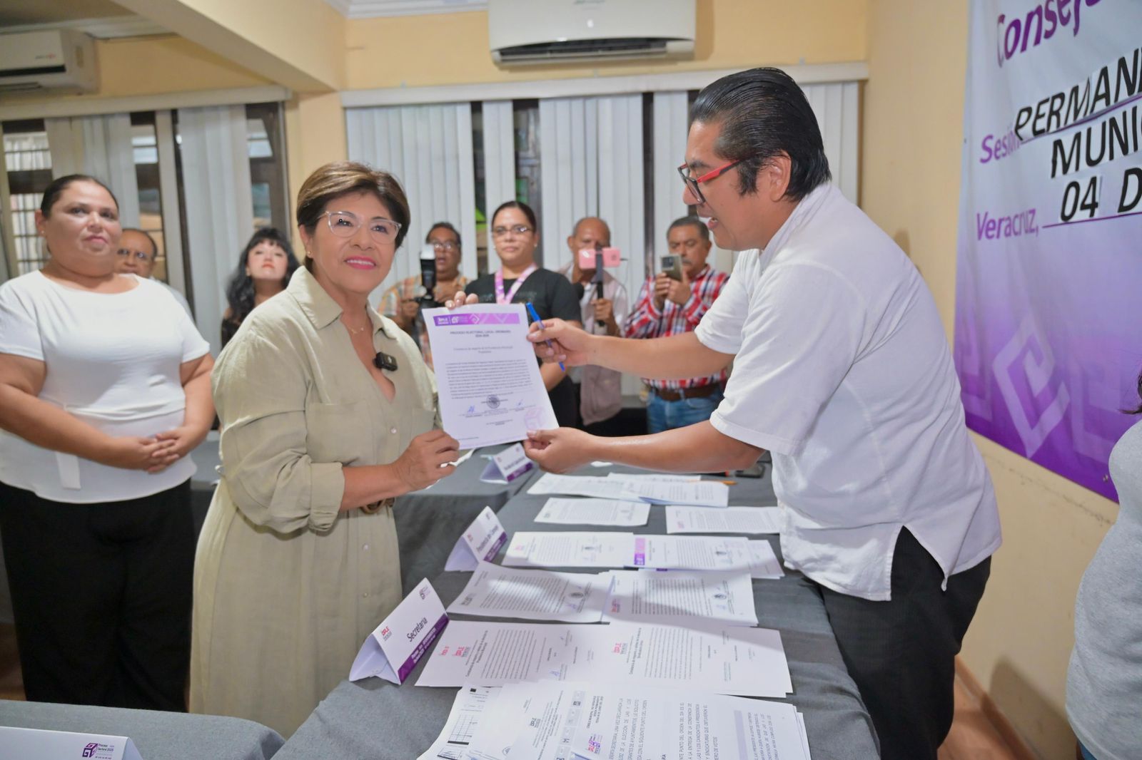 Veracruz, Ver. 05 de junio de 2025.– El Organismo Público Local Electoral (OPLE) de Veracruz entregó este jueves la constancia de mayoría a Rosa María Hernández Espejo, formalizando su victoria en las urnas y acreditándola como la primera alcaldesa electa de la Cuarta Transformación para gobernar el puerto de Veracruz en el periodo 2026–2029.