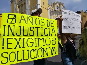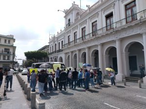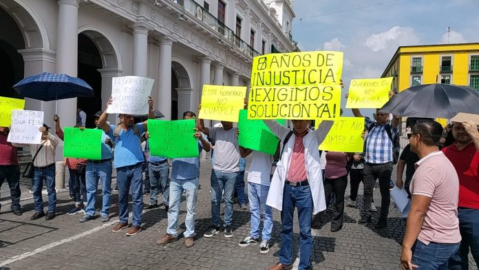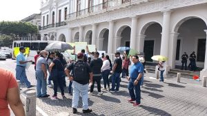 Ex trabajadores del Seguro Popular se manifestaron la mañana de este martes en la plaza Lerdo de Xalapa y de manera intermitente bloquearon la avenida Enríquez para exigir el pago de sus liquidaciones.