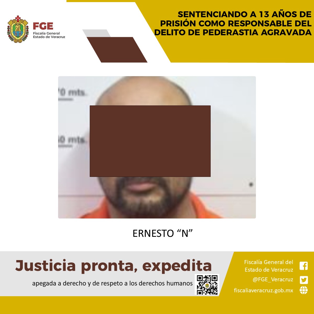 Veracruz, Ver.- 11 de junio de 2025.-La Fiscalía Regional Veracruz logró sentencia condenatoria de 13 años de prisión en contra de Ernesto “N” como responsable del delito de pederastia agravada, cometido en agravio de una víctima menor de edad de identidad resguardada.