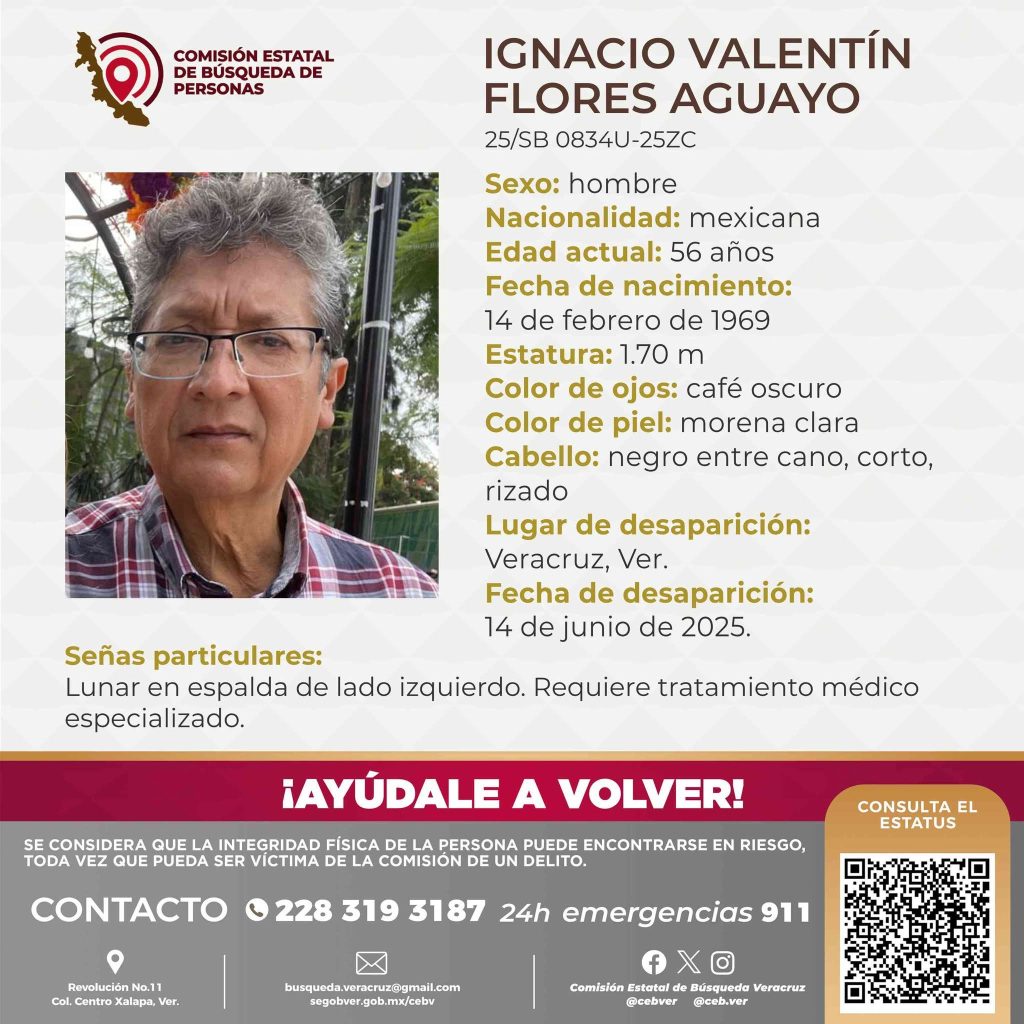 Ignacio Valentín Flores Aguayo desapareció este sábado 14 de junio, en la ciudad de Veracruz.