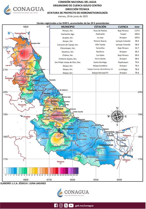 La Comisión Nacional del Agua (Conagua) mantiene vigilancia de los ríos Cazones, Jamapa y Cotaxtla, ello ante las crecidas derivadas de las lluvias ocasionadas por la tormenta tropical «EricK».