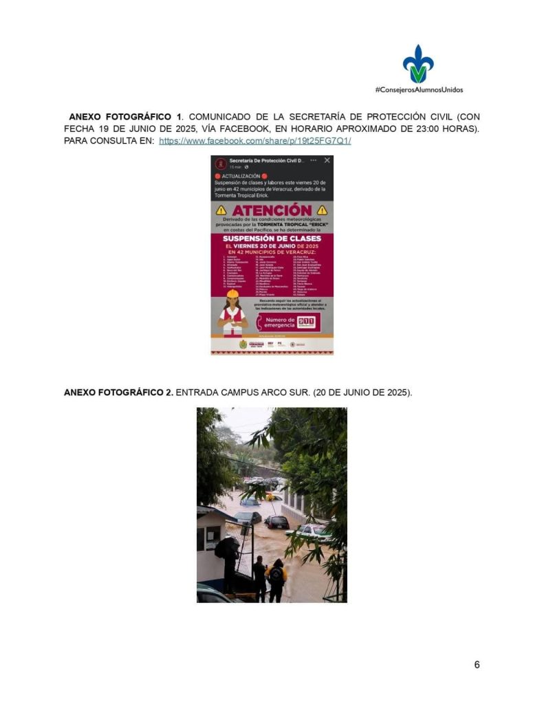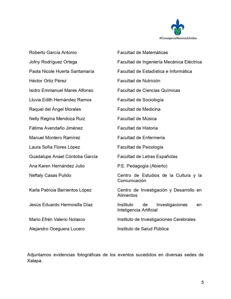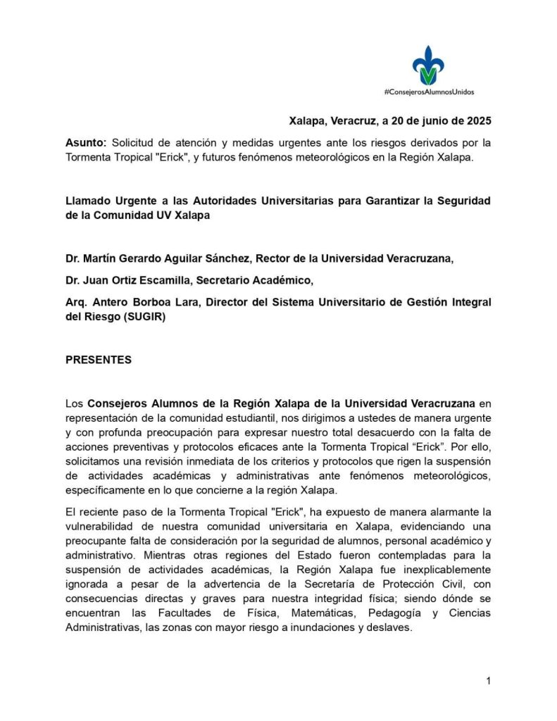 Consejeros alumnos de la Universidad Veracruzana (UV) también arremetieron contra el Rector Martín Aguilar por no haber suspendido clases este viernes 20 de junio en Xalapa.