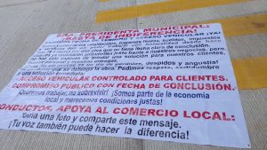 Los quejosos, mencionan en sus lonas que ellos se dedican a pagar rentas, sueldos, impuestos y servicios y aún así no pueden trabajar con normalidad.