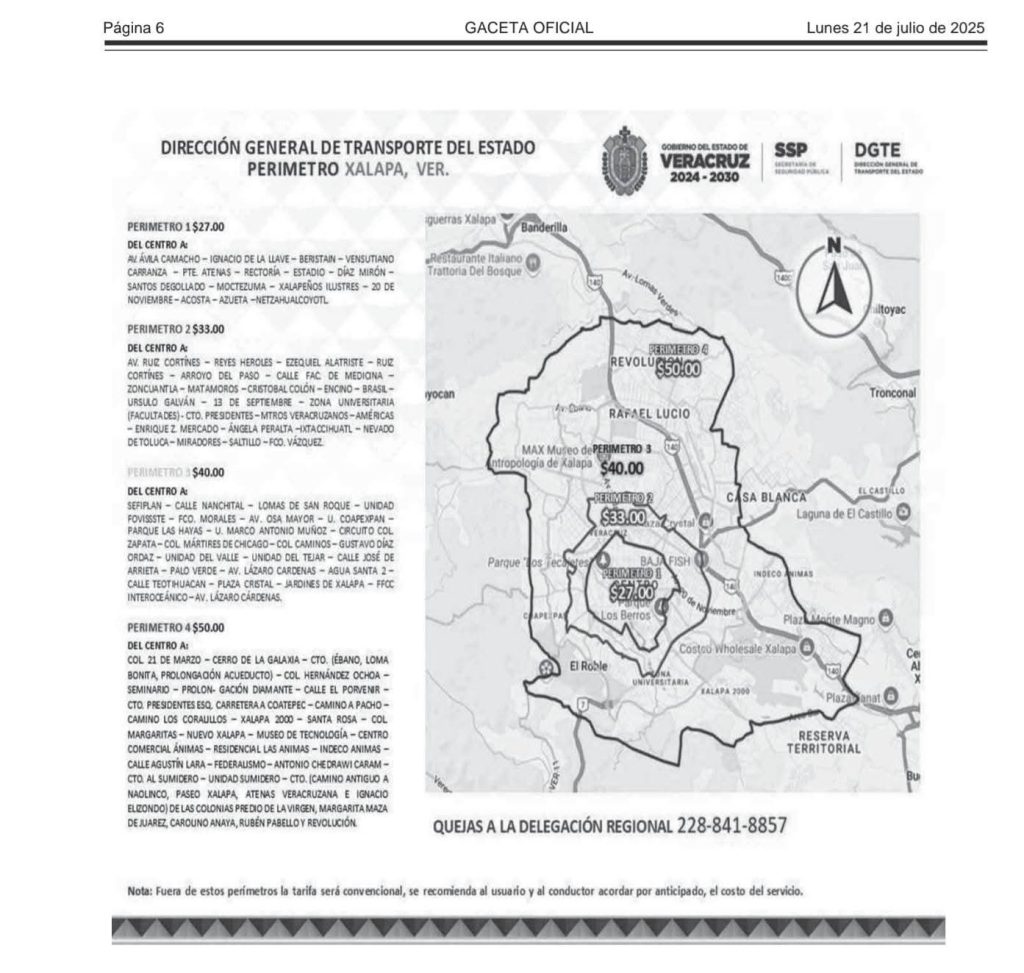 Para Xalapa, las tarifas quedan así:
