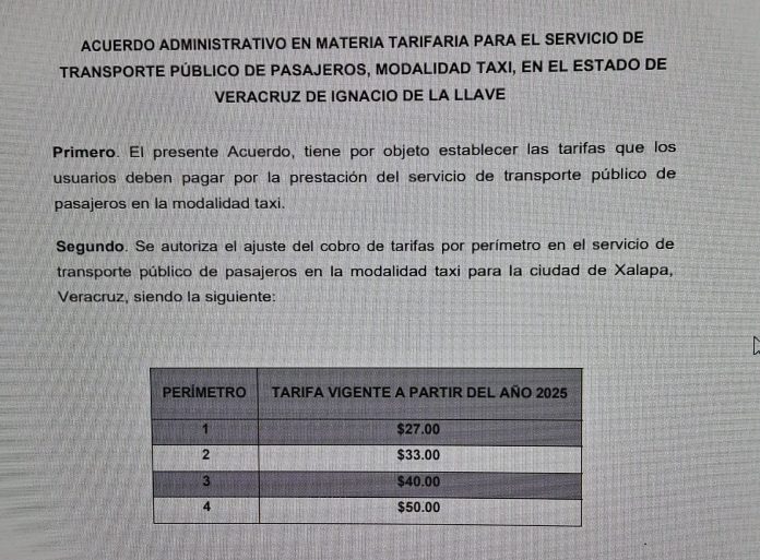 Este lunes fue publicado en la Gaceta Oficial del Estado de Veracruz un Acuerdo Administrativo mediante el cual se establecen las nuevas tarifas de taxis para Xalapa y otras ciudades del estado de Veracruz.