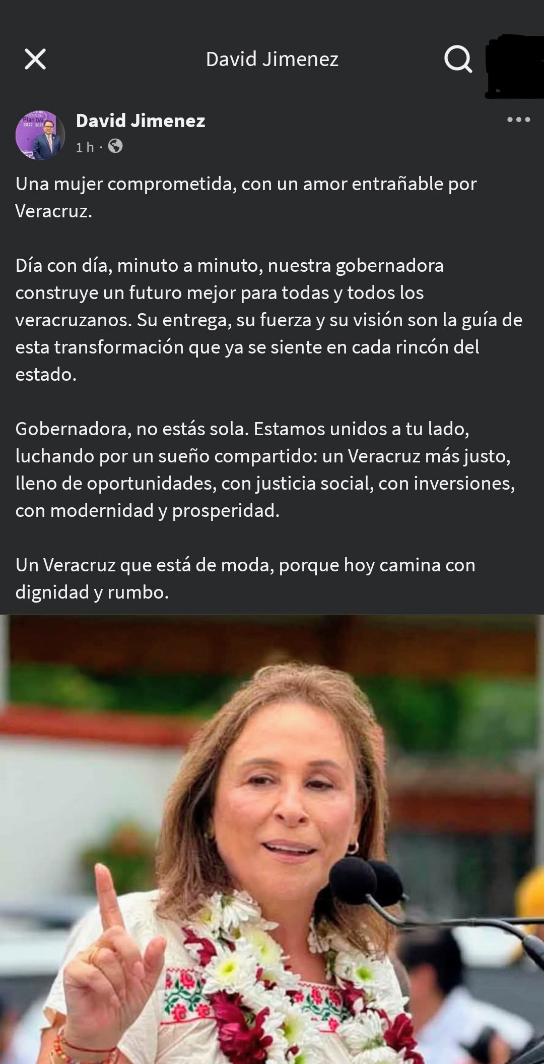 A un mes y días de ser nombrado en la mencionada subsecretaría, Jimenez Rojas agrega en su texto, “Gobernadora, no estás sola. Estamos unidos a tu lado, luchando por un sueño compartido: un Veracruz más justo, lleno de oportunidades, con justicia social, con inversiones, con modernidad y prosperidad”.