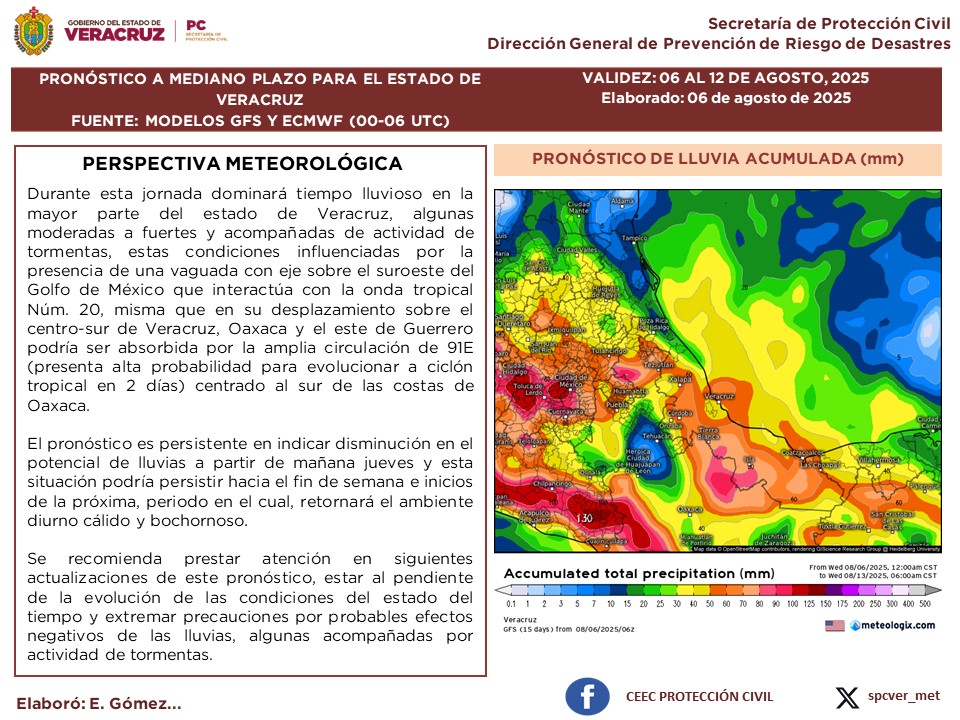A partir de este jueves disminuirán las lluvias en Veracruz; próximo fin de semana será caluroso