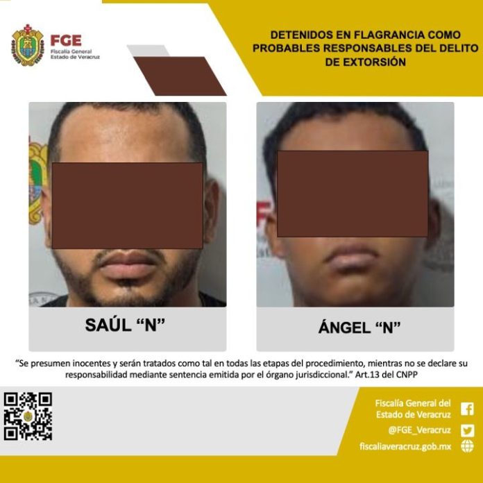 La Fiscalía General del Estado informa que, como resultado de una acción operativa de la Unidad Especializada en Combate al Secuestro y la Extorsión, fueron detenidos en flagrancia Saúl “N” y Ángel “N”, como probables responsables del delito de extorsión, cometido en agravio de una víctima con identidad resguardada.