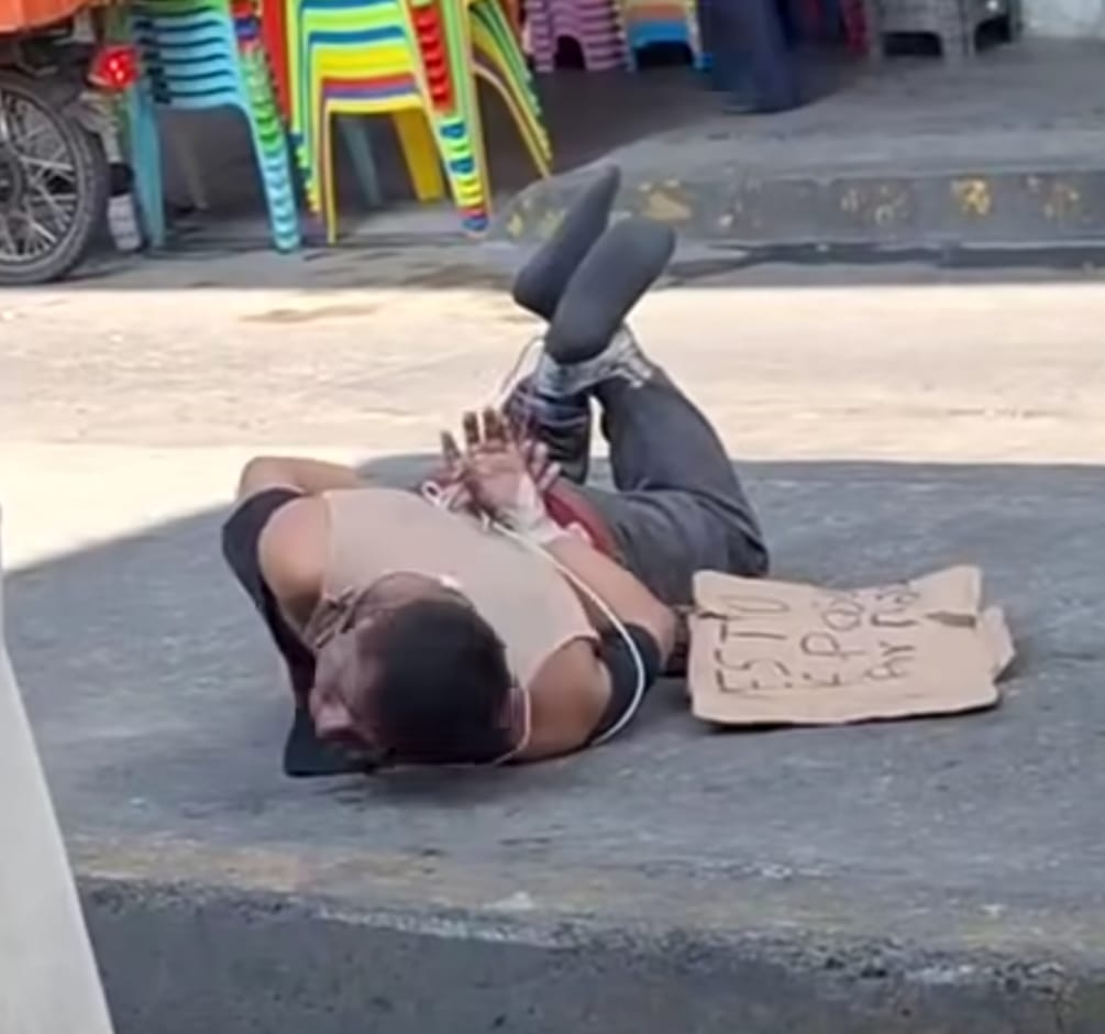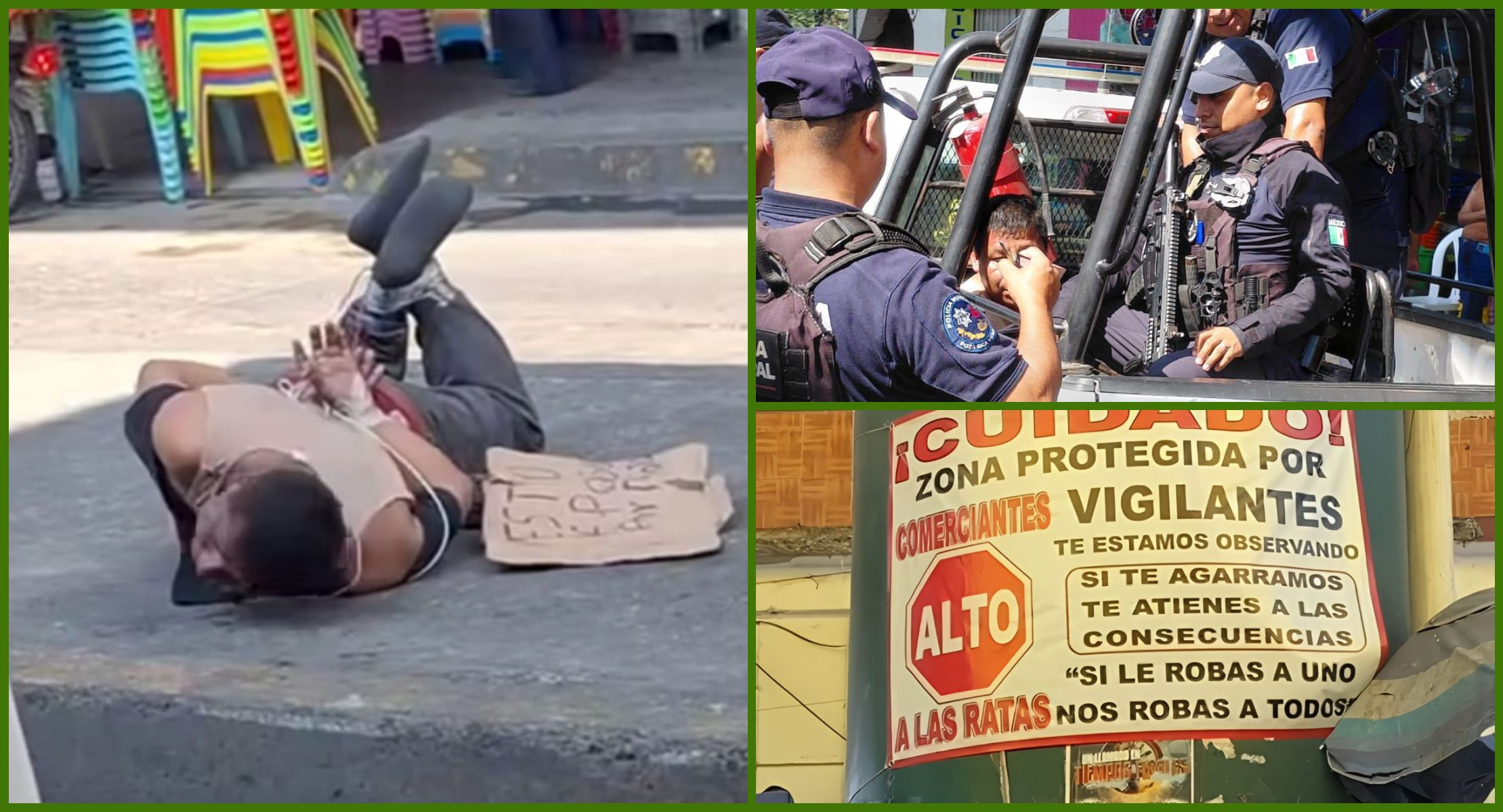 Dicho acontecimiento se suscitó este domingo 17 de agosto del presente año, aproximadamente a las 11:00 horas, cuando una persona del sexo masculino fue sometida por los locatarios y transeúntes, quienes lo amarraron y lo dejaron tirado sobre la banqueta, a la vista de peatones y automovilistas. Como escarmiento, colocaron a su costado un cartón con la frase: “Esto me pasó por andar robando», además de ser golpeado.
