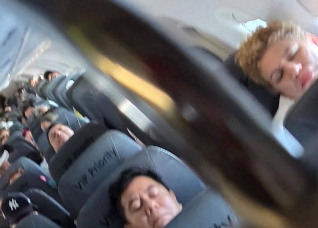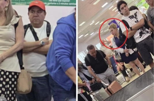 En redes sociales circulan fotografías de Domínguez y García al interior del avión, y otras que los muestran mientras esperaban sus maletas en la banda de equipaje.