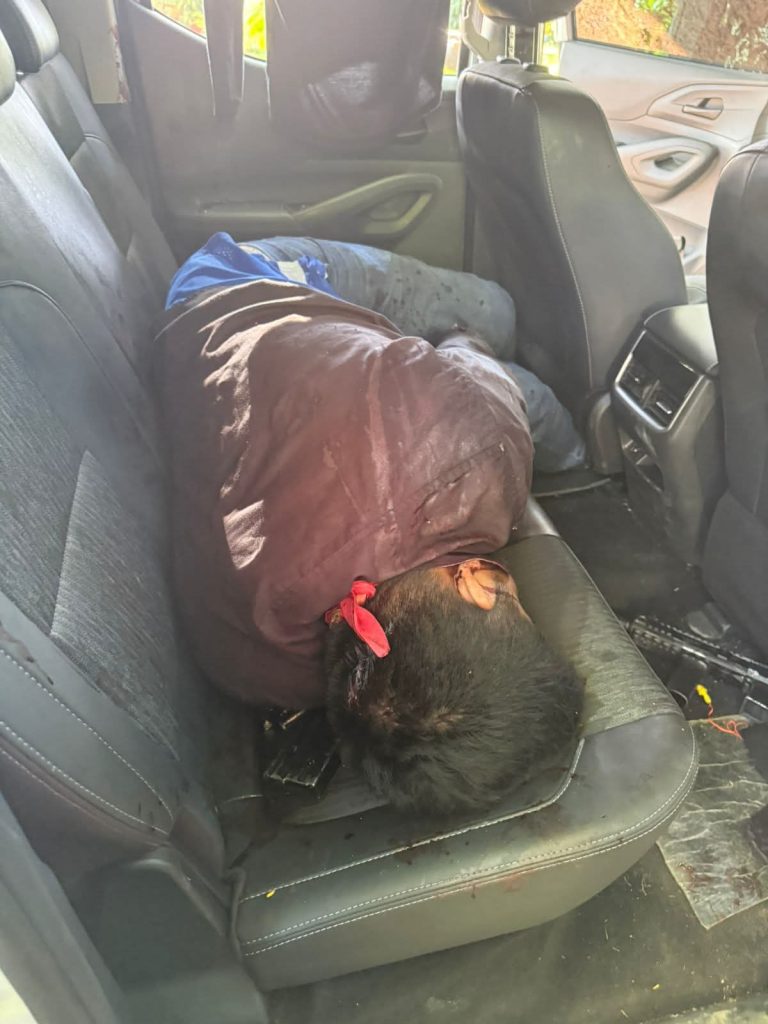 Dentro de ese vehículo, había docenas de casquillos percutidos, un arma larga y un cadáver en calidad de desconocido, es uno de los agresores contra la munícipe quien muere por los balazos que lanzaron los escoltas de la edil al repeler el atentado.