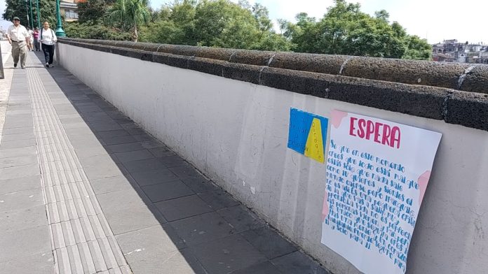 Mensaje de aliento aparece en el puente Xallitic tras recientes suicidios.