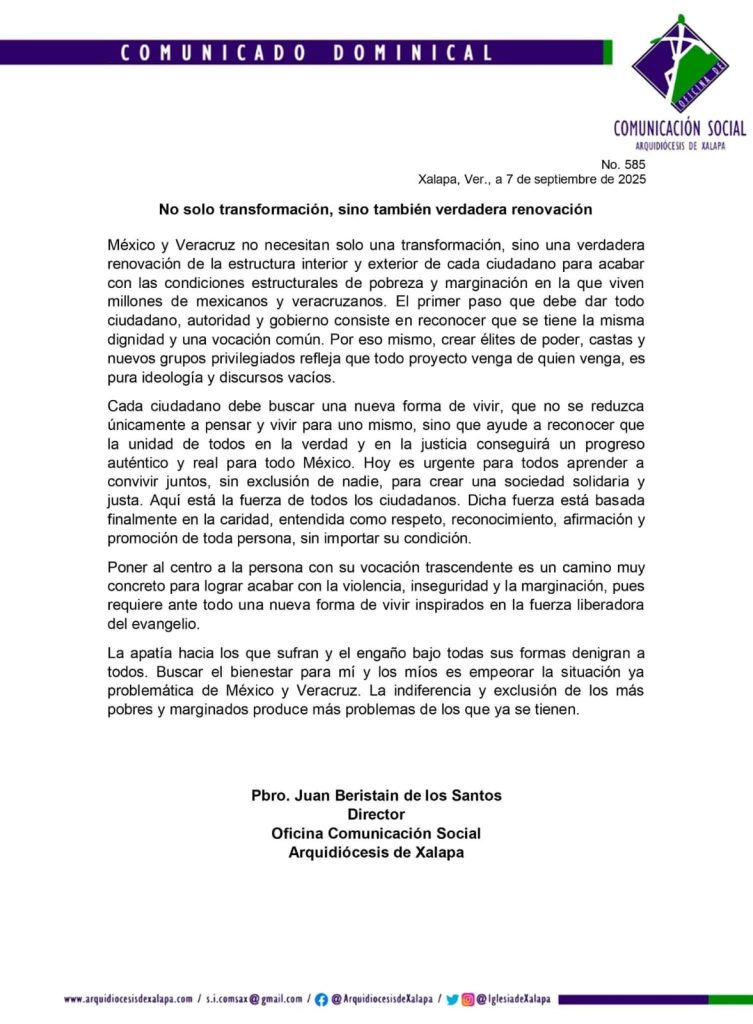 Arquidiócesis de Xalapa advierte: «No sólo transformación, sino también verdadera renovación»
