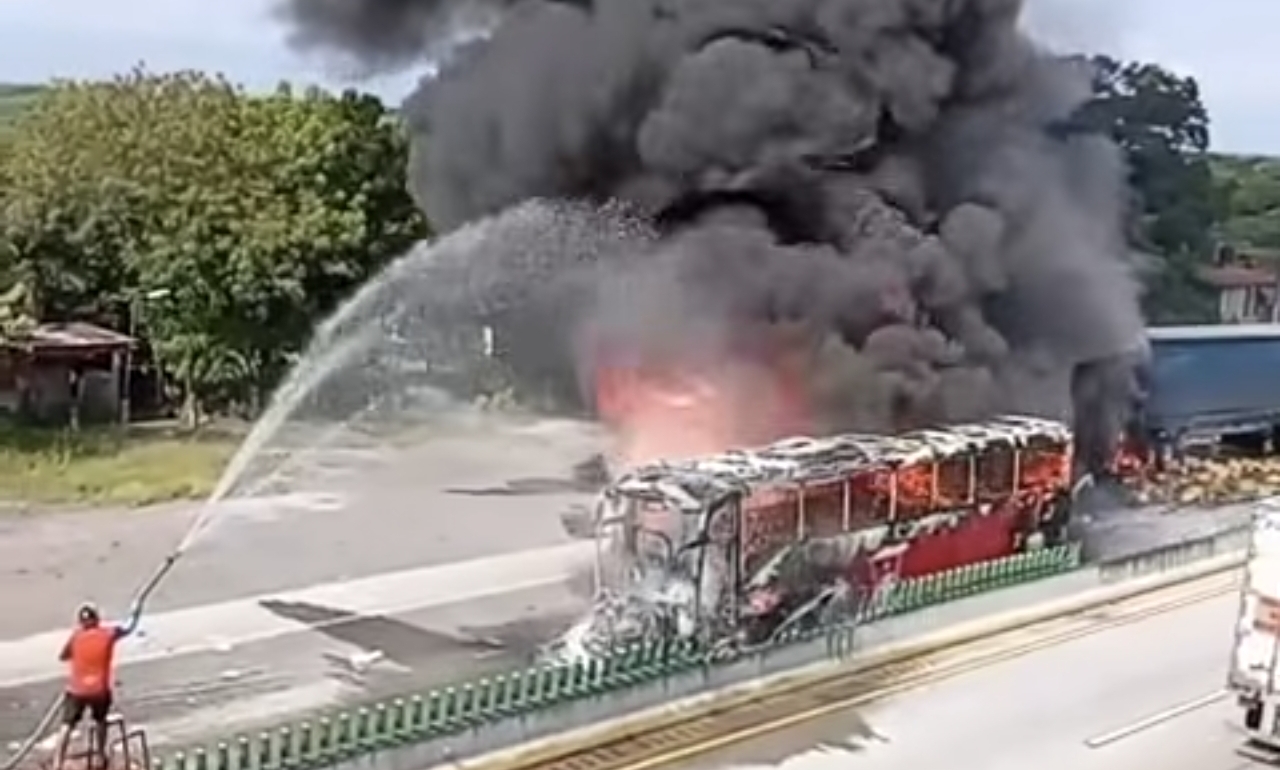 Tráiler choca contra ADO y ambos se incendian en la autopista Córdoba–Veracruz, la mañana de este martes.