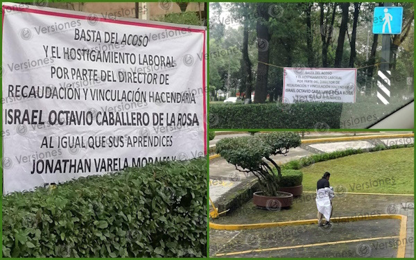 A ellos los señalan en las lonas de presunto acoso y hostigamiento laboral.