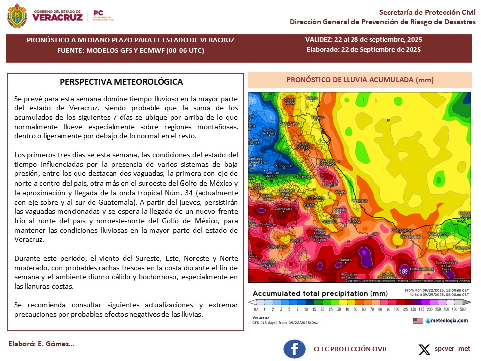 Continuarán las lluvias esta semana en gran parte del estado de Veracruz