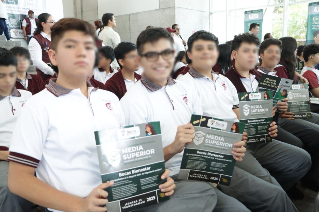 La titular de Educación, Claudia Tello Espinosa, recordó que antes del 2018 las juventudes eran rezagadas y ello motivó el incremento en la deserción escolar; en la actualidad, agregó, el compromiso es acompañar a las niñas, niños, adolescentes y jóvenes en su trayectoria académica, desde educación inicial hasta la licenciatura, y para ello se cuenta con becas acordes al nivel educativo.