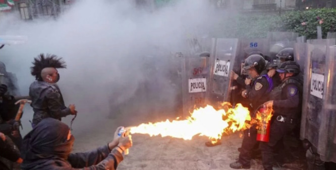 El Gobierno de la CDMX identificó a un grupo de 350 personas que durante todo el trayecto de la marcha, de Tlatelolco al Zócalo, saquearon comercios, dañaron fachadas de inmuebles y prendieron fuego contra establecimientos comerciales para luego agredir durante una hora a los policías que intentaban resistir.