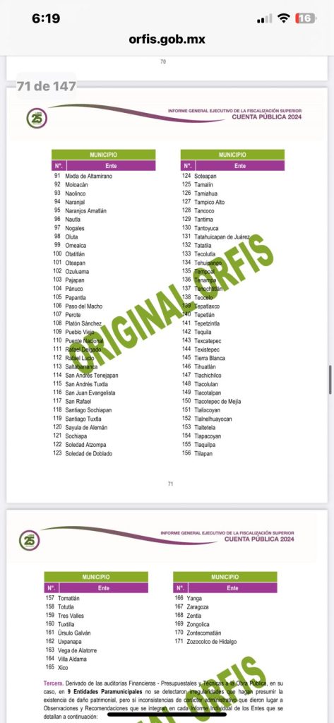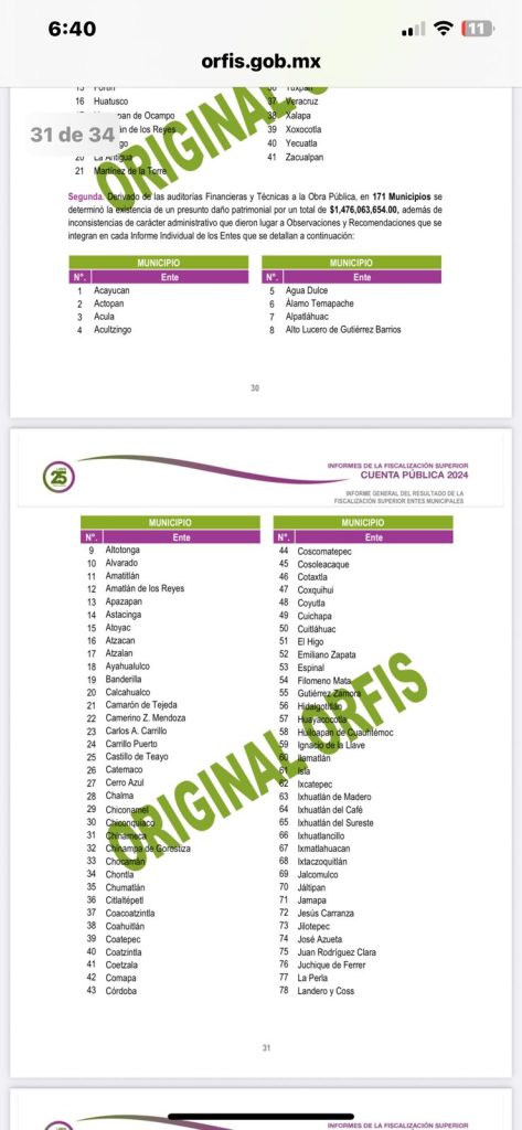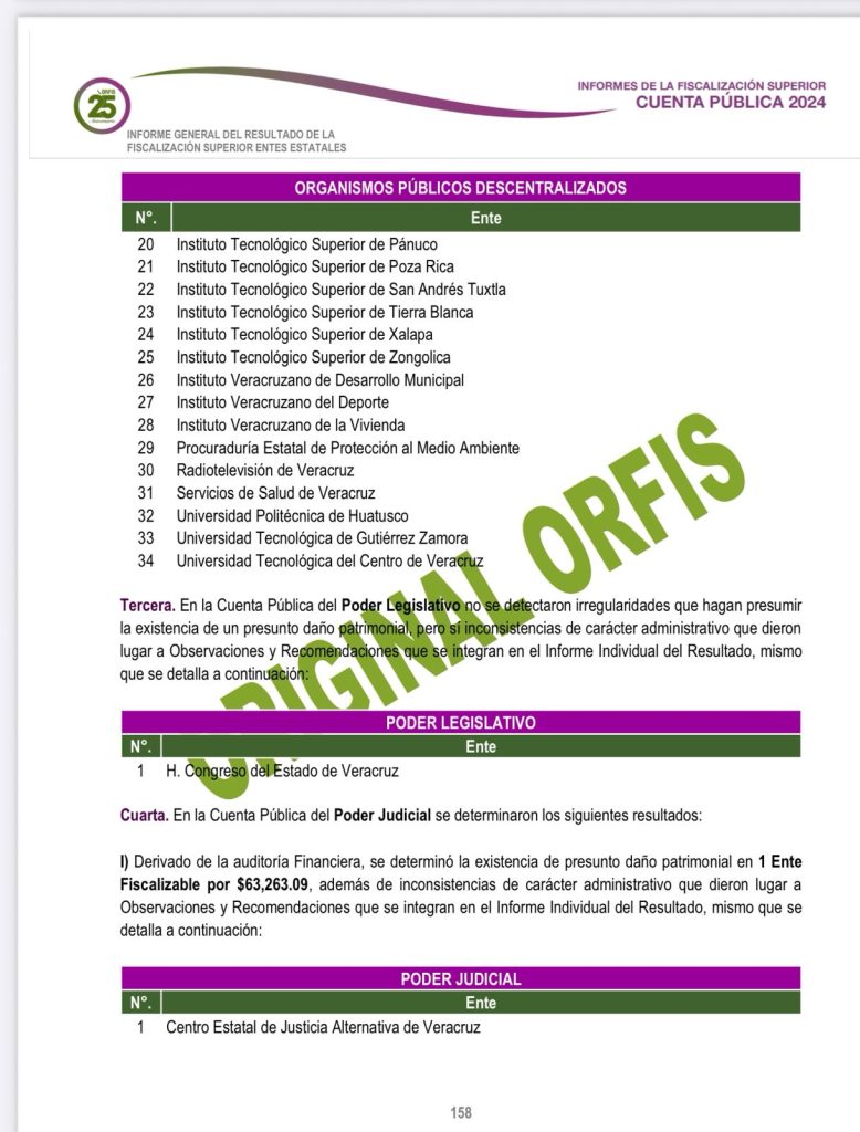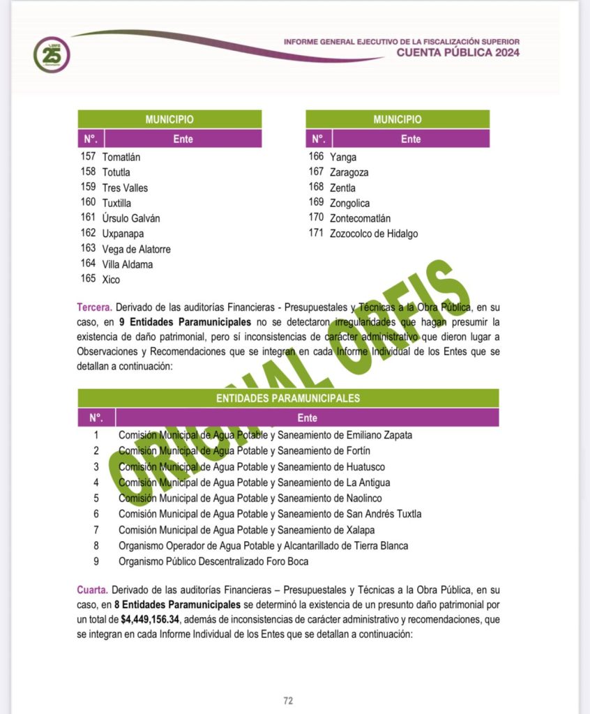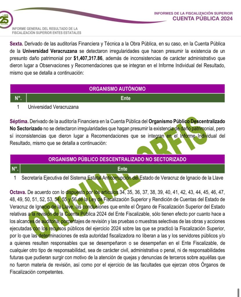 El Órgano de Fiscalización Superior entregó al Congreso Local el informe del resultado correspondiente a la cuenta pública 2024, que es el último año del Gobernador Cuitláhuac García y penúltimo de los actuales ayuntamientos y otros entes fiscalizables, la cual arroja en documentos un monto de daño patrimonial entre estado, municipios, órganos autónomos y entes paramunicipales y desconcentrados de $2 mil 311 millones 380 mil 833 pesos con 74 centavos.