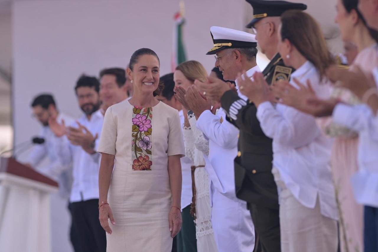 En su discurso, Sheinbaum felicitó a los secretarios de Marina, almirante Raymundo Pedro Morales Ángeles, y de la Defensa Nacional, general Ricardo Trevilla Trejo, por su “entrega, valentía, honestidad y patriotismo”. Destacó que la Marina “no sólo protege nuestras costas, sino combate ilícitos, impulsa la ciencia y la tecnología y auxilia al pueblo cuando más lo necesita”.