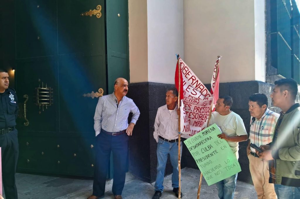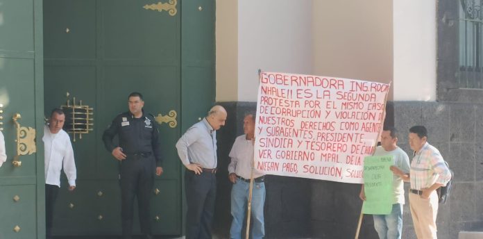 Otra vez agentes y subagentes municipales de Chalma se manifiestan en Plaza Lerdo porque alcalde no les paga; los atendió Ahued