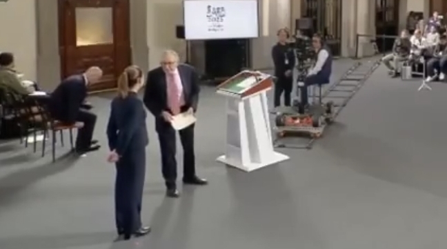«¿Mande?», preguntó el secretario de salud mientras se acercaba a la mandataria, a lo que ella contestó con un nivel de voz menor para que no se alcanzara a escuchar la instrucción completa. Kershenobich sólo asintió con la cabeza y empezó a dar su reporte.