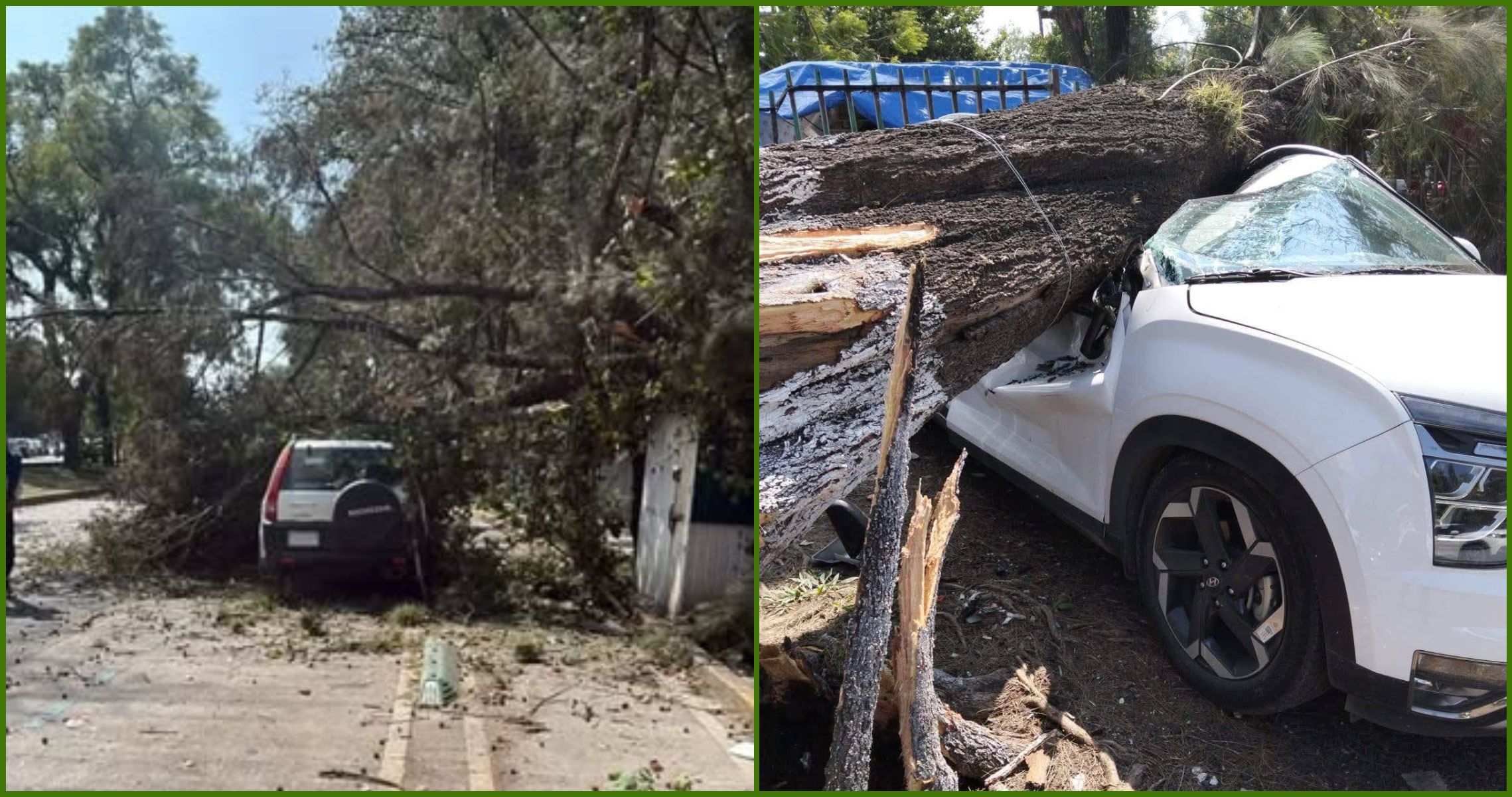 Por rachas de viento, cae árbol sobre vehículos en avenida Ruiz Cortines de Xalapa