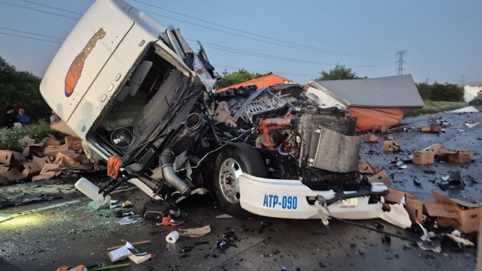 Chocan dos tráilers en la autopista Córdoba-Veracruz, a la altura del municipio de Cuitláhuac, lo cual tuvo como saldo una persona fallecida y otra herida.
