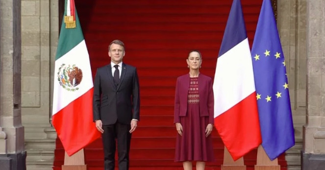 El presidente francés Emmanuel Macron arribó poco antes de las 9:45 de la mañana de este viernes a Palacio Nacional para ser recibido por la presidenta Claudia Sheinbaum previo a su primera reunión como parte de la agenda que encabezarán los mandatarios para fortalecer la relación económica de los países.