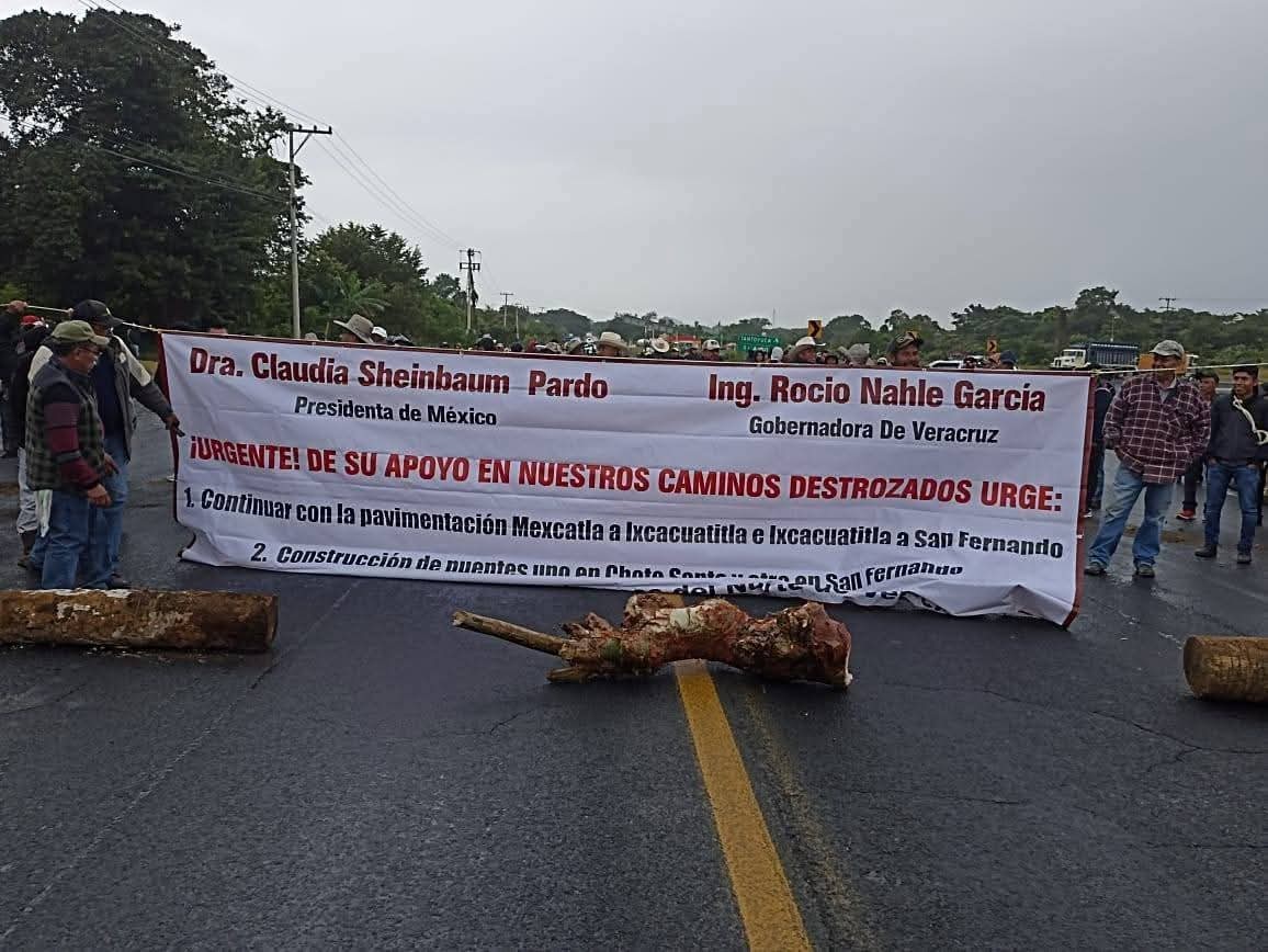 Habitantes del municipio de Chicontepec mantienen bloqueada la carretera en el entronque de Potrero del Llano, impidiendo el paso a todo tipo de vehículos desde las primeras horas de este lunes 10 de noviembre.