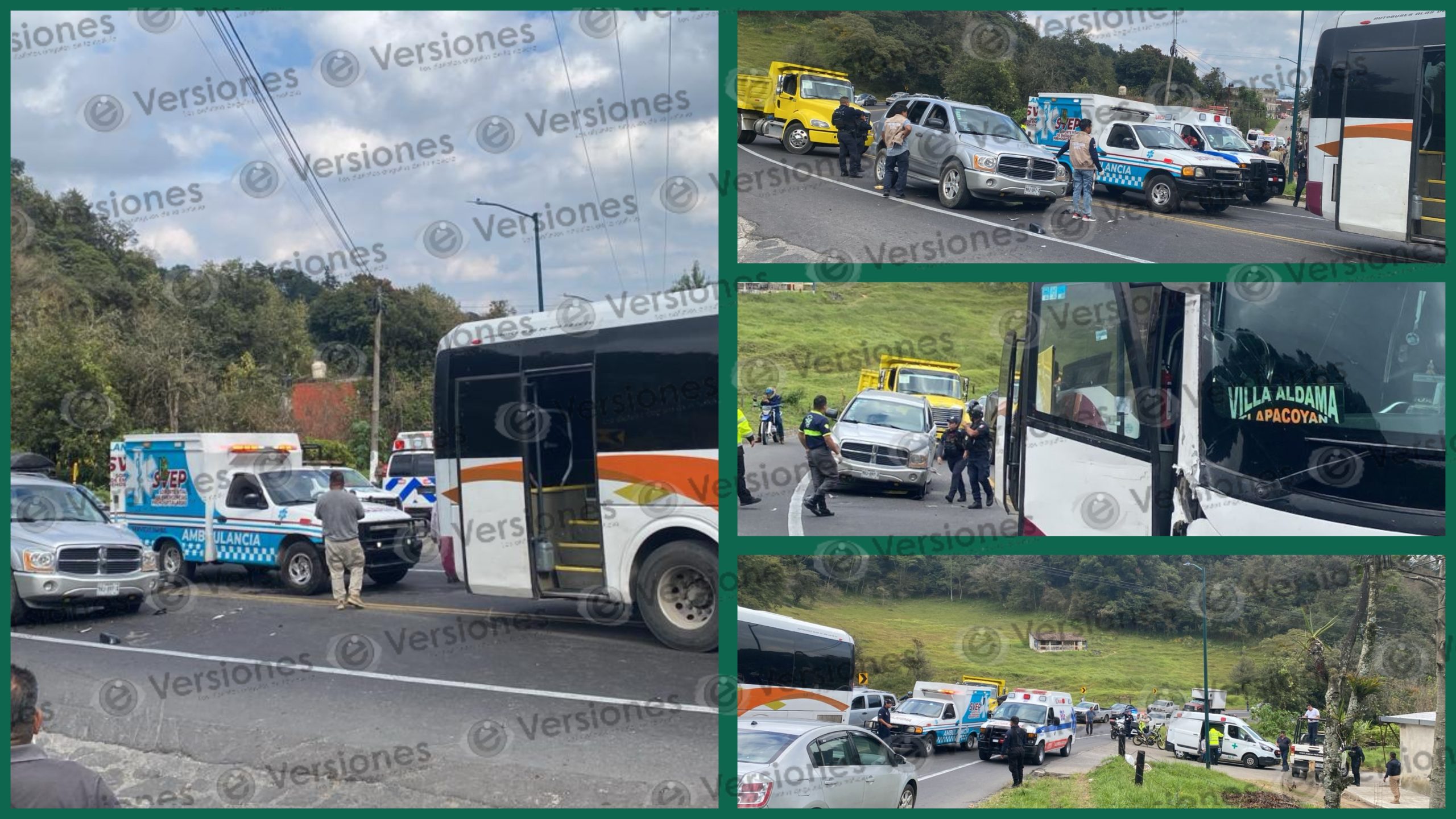 La fuente indicó que el camión de pasaje número económico 4944, con destino a Tlapacoyan, al entrar a una curva impactó a una camioneta Dodge, tipo Durango, modelo 2006, color gris, placas de circulación YHJ-097-A, en su parte frontal delantera.