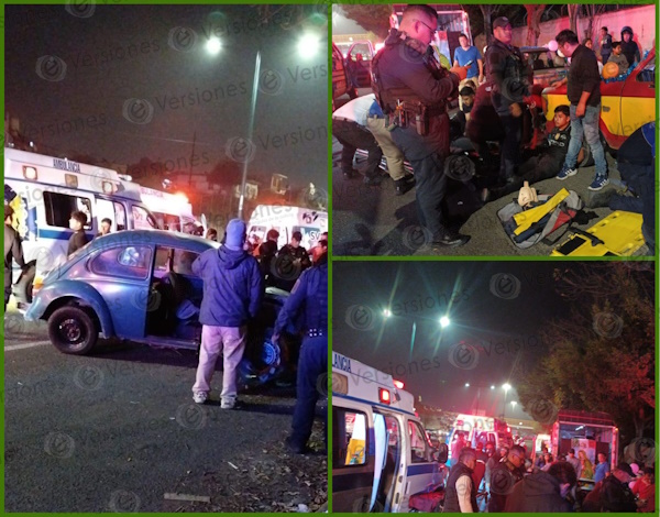 Varios peregrinos resultaron heridos tras el choque de un vochito contra una camioneta en el bulevar Xalapa-Banderilla, a la altura de la colonia 21 de Marzo, de Xalapa.