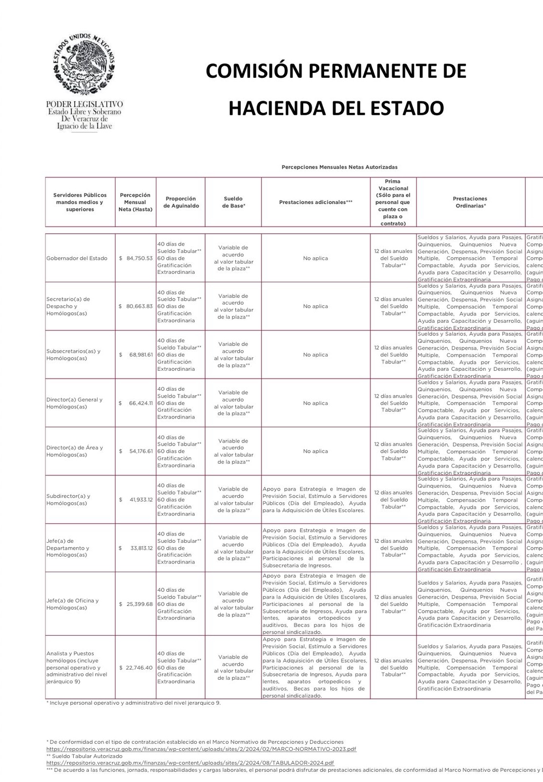 Los Directores Generales y Homólogos(as) tendrán un sueldo tabular de; 66,424.11.