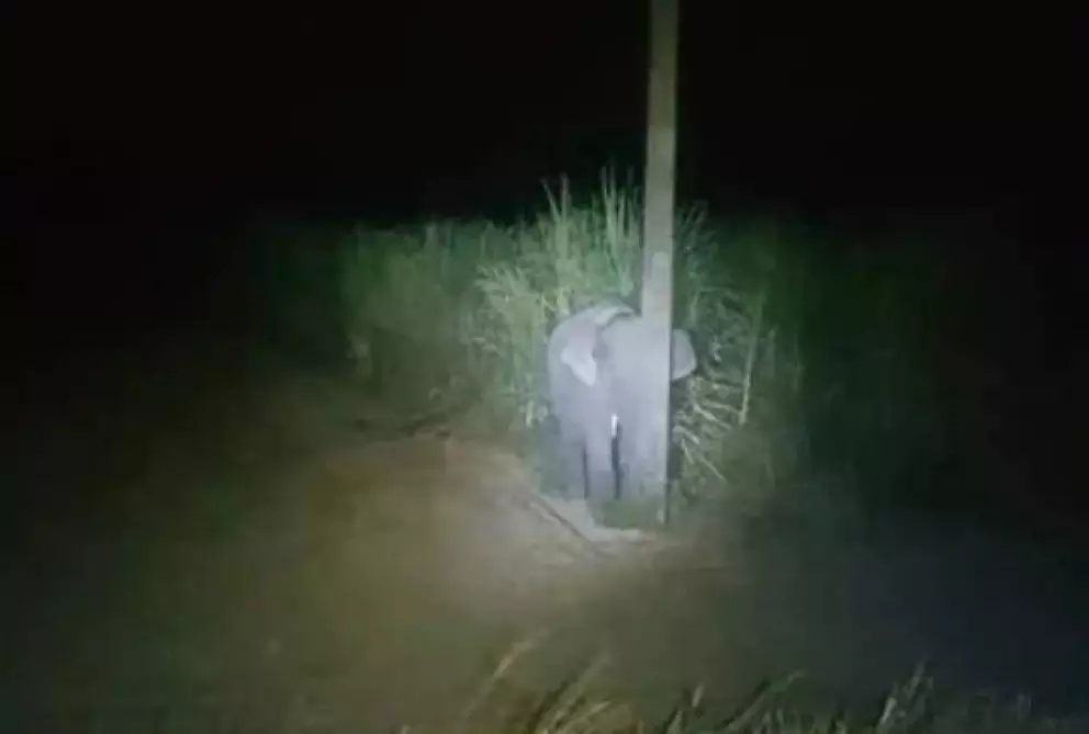 El hecho que fue captado por las cámaras, dentro del campo de un granjero. Según el diario Daily Mail el travieso paquidermo, al percibir al grupo de humanos que se acercaba entre las cañas de azúcar, pensó que era una estupenda idea esconderse detrás de un poste de luz.