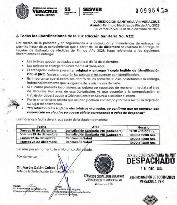 La cereza del pastel fueron los bloqueos viales que en estos días realizaron trabajadores de Salud porque les dieron vales de Chedraui que forzosamente tenían que ser canjeados por despensa y no por efectivo. El colmo es que les dieron sólo diez días para canjearlos en esas tiendas. ¿De quién era el negocio? Ya se ha señalado que al menos dos funcionarias de Recursos Humanos operaron ese atraco https://versiones.com.mx/2025/12/18/senalan-a-dos-funcionarias-de-haber-orquestado-los-vales-de-chedraui-en-sesver-presumen-que-se-llevaron-una-buena-tajada/  , pero tampoco debemos soslayar que hay un responsable superior, una cabeza hasta arriba, y esa es la del secretario Valentín.